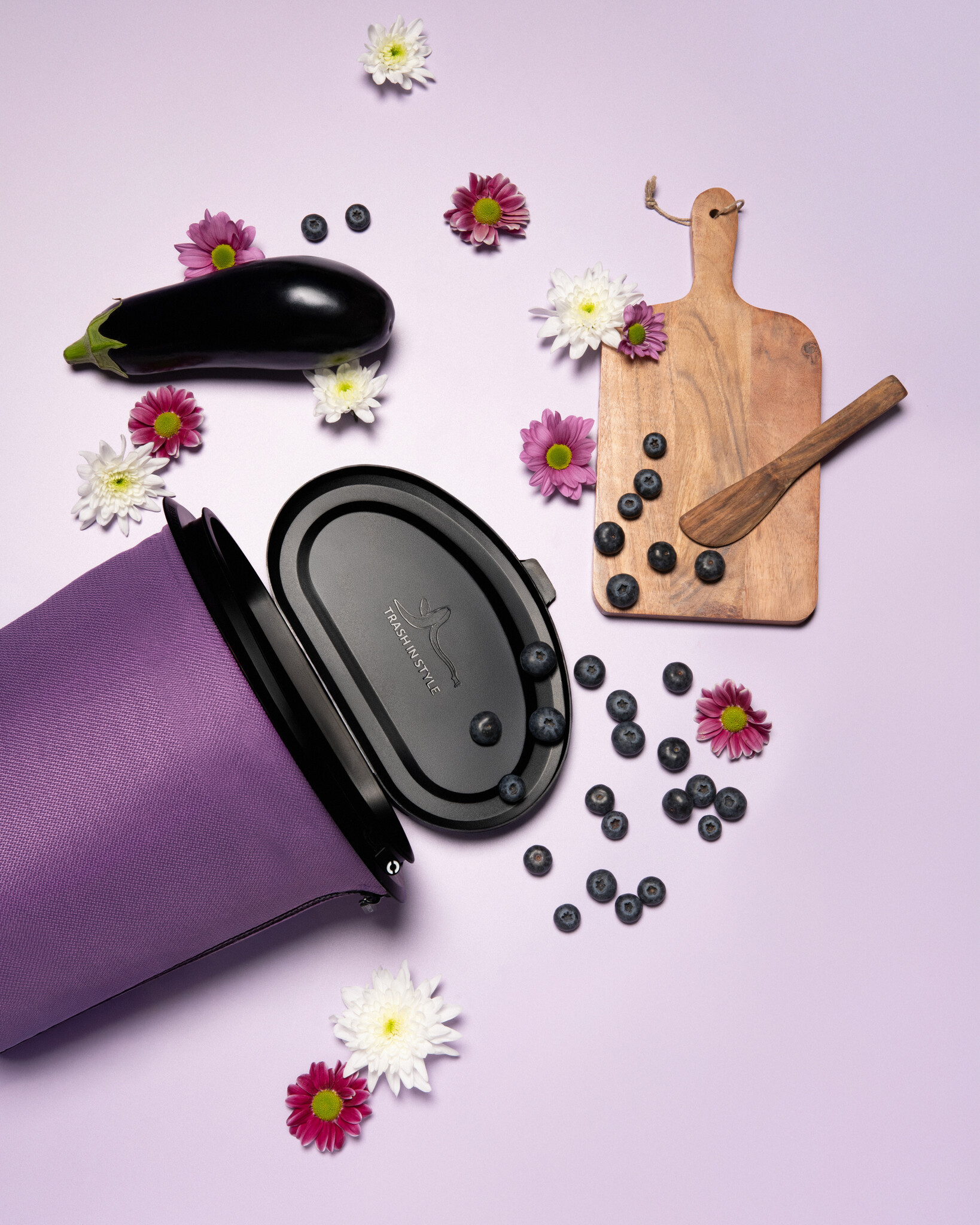 - Onze Flextrash Epic Eggplant maat M bevat een Design top deksel, een stoffen Coverbag en een handig elastiek je favoriete navulzak tussen te klemmen.